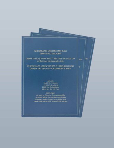 Verwenden Sie Einladungskarten um Freunde, Familie oder Geschäftspartner für bestimmte Events einzuladen. Die individuelle Gestaltbarkeit ist hier besonders wichtig. Deshalb können Sie bei uns Einladungskarten ab einem Exemplar bestellen. Eine Einladung per E-Mail kann schnell vergessen werden, hingegen sind gedruckte Einladungskarten wesentliche präsenter.