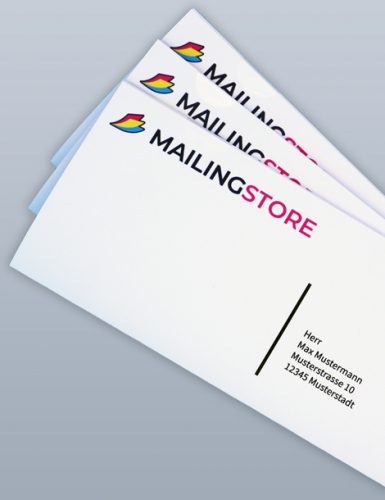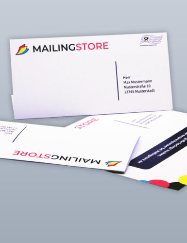 Für die Absenderadresse verwenden wir Ihre Rechnungsadresse. Hierfür werden anstatt den Musterdaten im Onlinedesigner Ihre persönlichen Unternehmensdaten eingefügt. Zudem werden entweder Ihre Adressdaten in 1/0 farbig auf das Kuvert oder das Anschreiben gedruckt. Dies variiert je nach Konfiguration und Produkt.